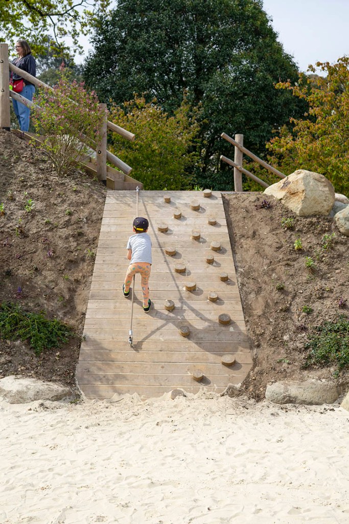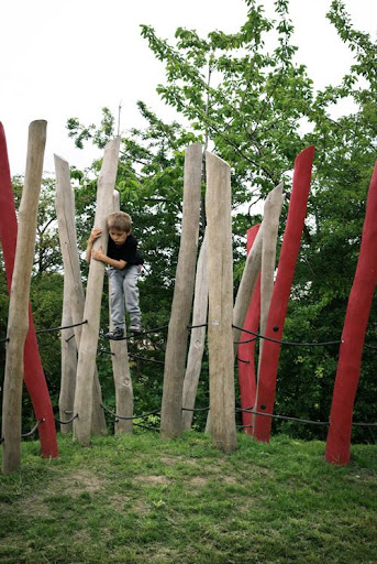 We could take advantage of the slope with this kind of climbing feature and have a slide next to it coming back down the slope.