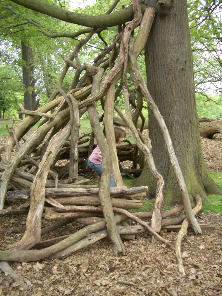 Something like this could be dug into the slope. Make the logs taller and put in handholds for climbing. Or, make the logs several feet tall so kids can climb them from both inside and outside…storming the fort!