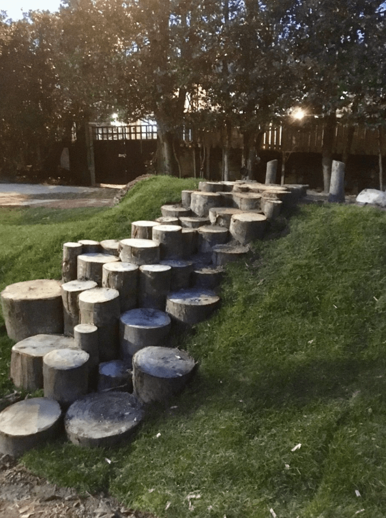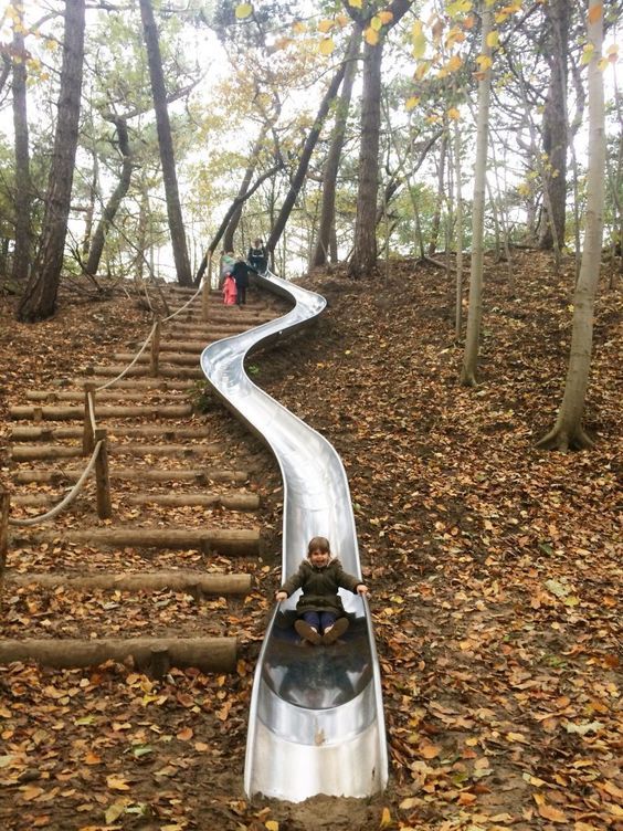 Here we have another example of a natural staircase, this time with a slide at the top. Careful though, those metal slides get HOT in the summer!