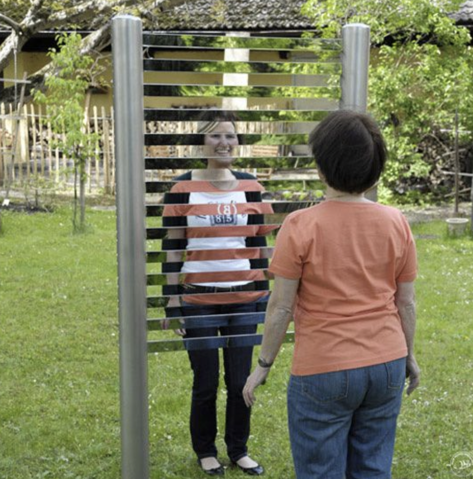 Sight is another sense that can be fun for everyone to mess around with, this mirror illusion shows a fascinating combination of two friends.
