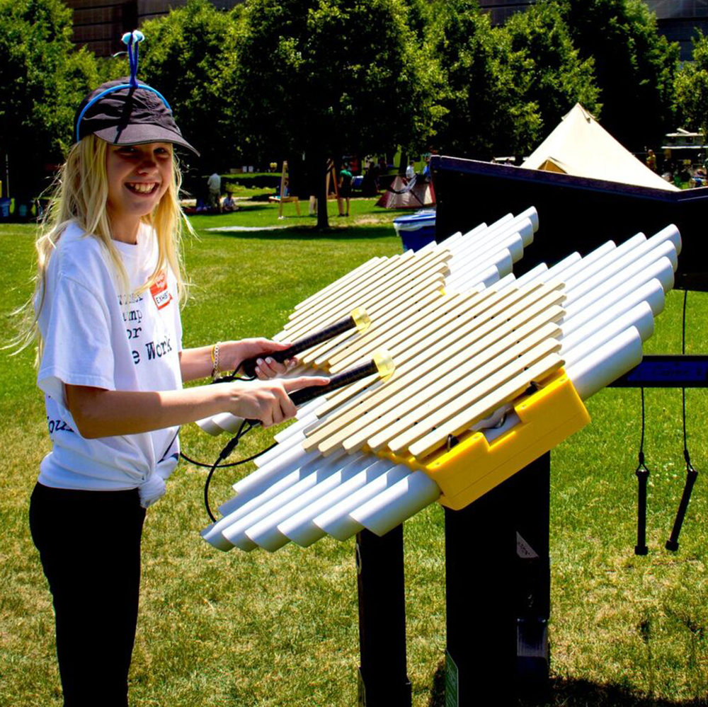 Chimes aren’t the only sound machine, you can’t forget about the drums! It looks like different sizes produce different pitches.