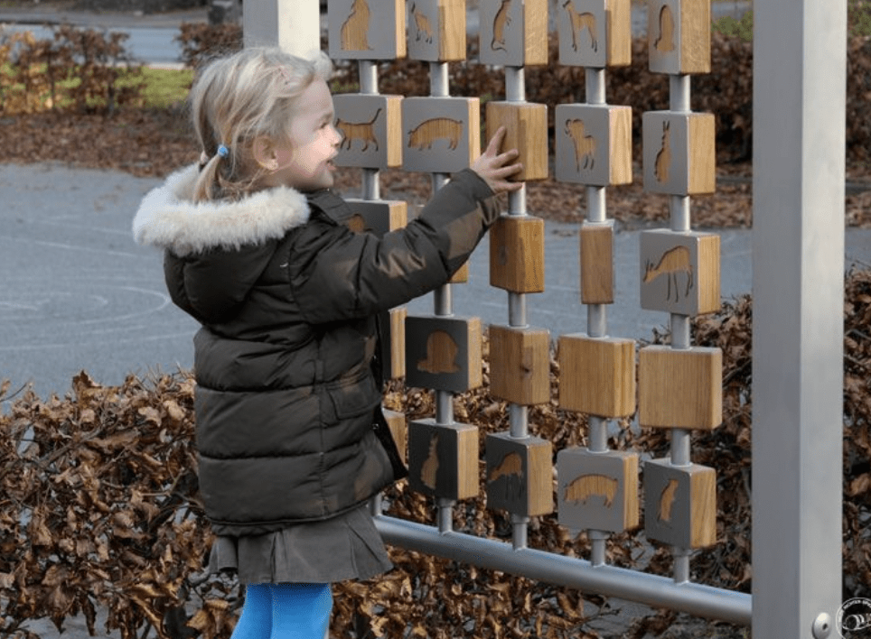 Touch and sight are important sense to explore, this example has multiple purposes. The pictures can help young children learn their animals, while older children/teens could (either individually or competitively) engage in a matching game.